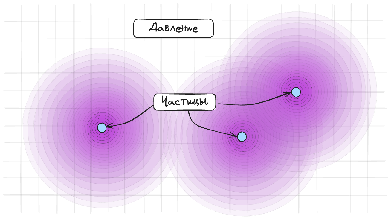 Каждая частица образует вокруг себя “облако” влияния, и чем ближе к частице, тем оно сильнее.